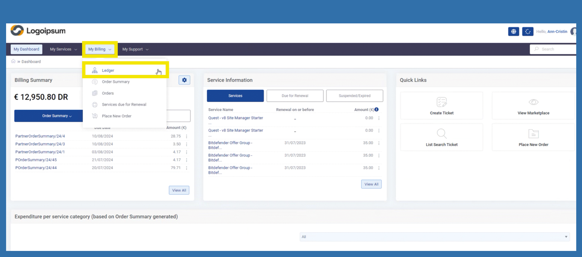 To get your End Customer to his Ledger page, please let him follow the path below in his member panel: