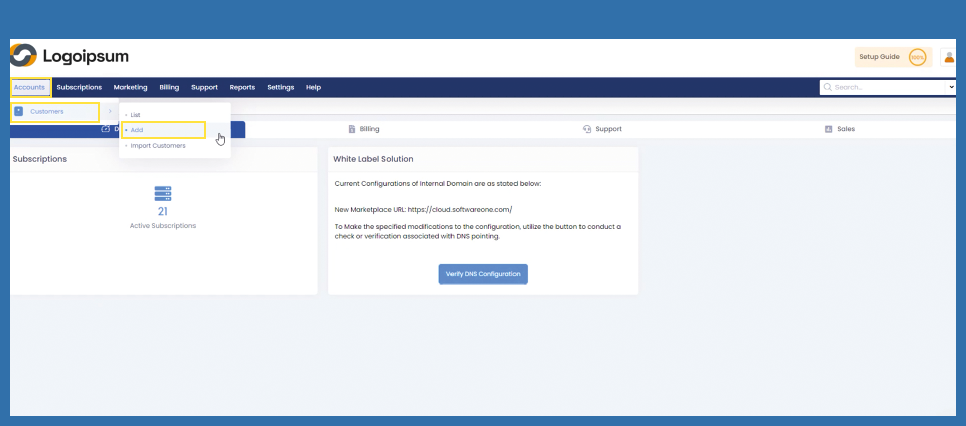 To add an end customer, please click the following path: