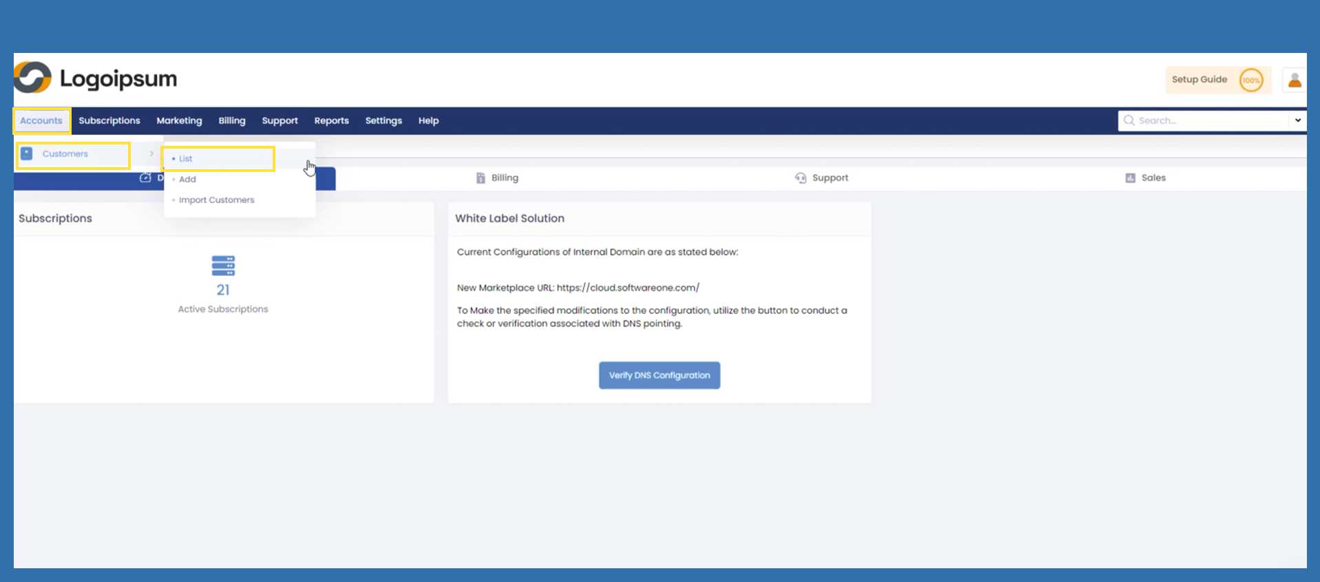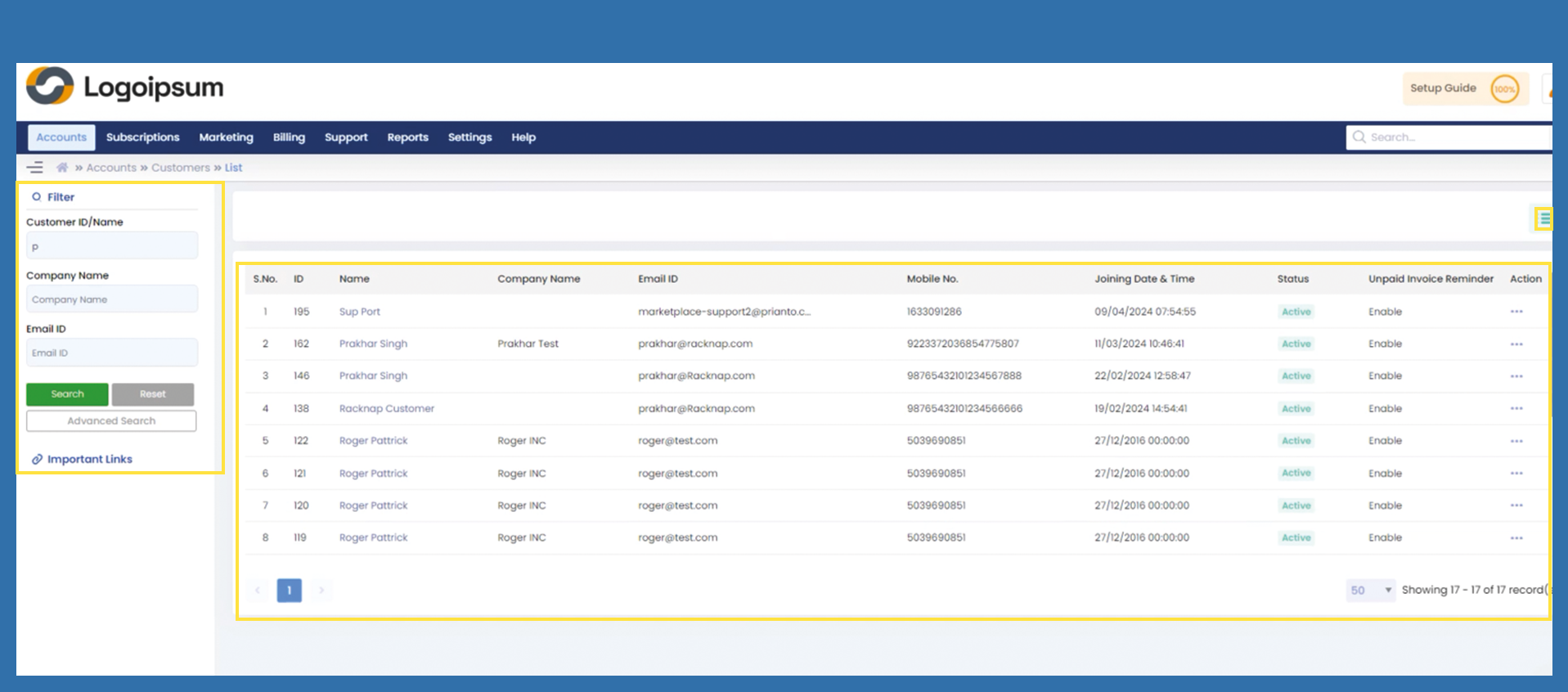 Use the filter section on the lefthand side, to check if the customer is registered on the marketplace.