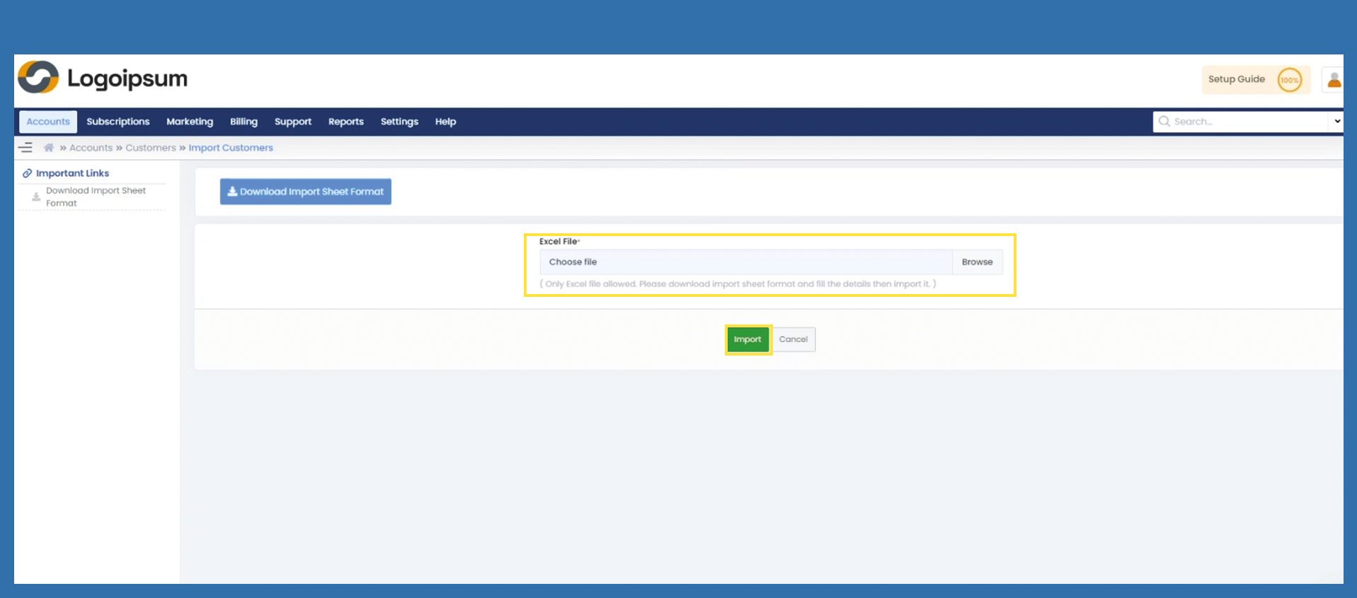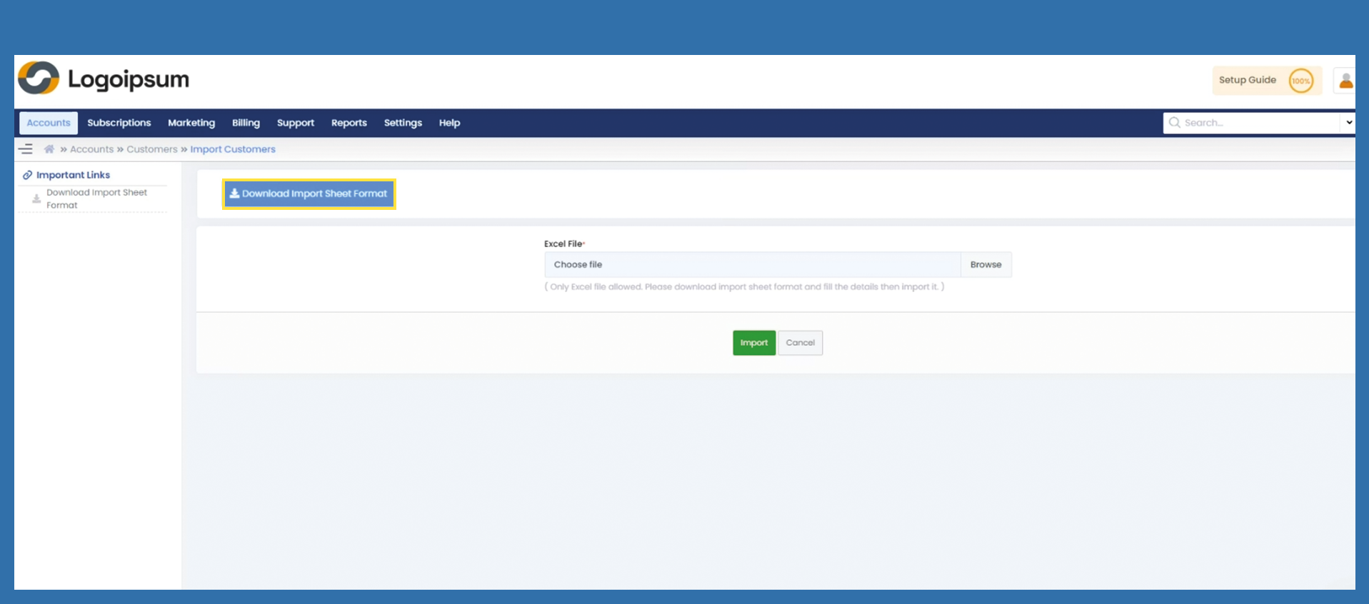 Click on Download Import Sheet Format button and download the excel file. You can find the file in your download folder.