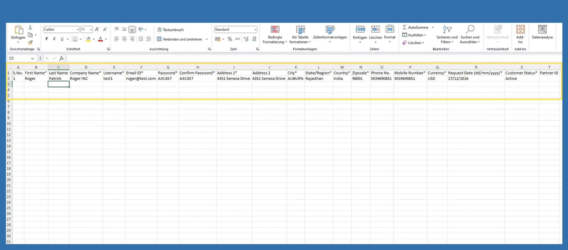 If you have several end customers for whom you would like to import the data into the Marketplace, you can import them with a list. The following steps will show you how this works.