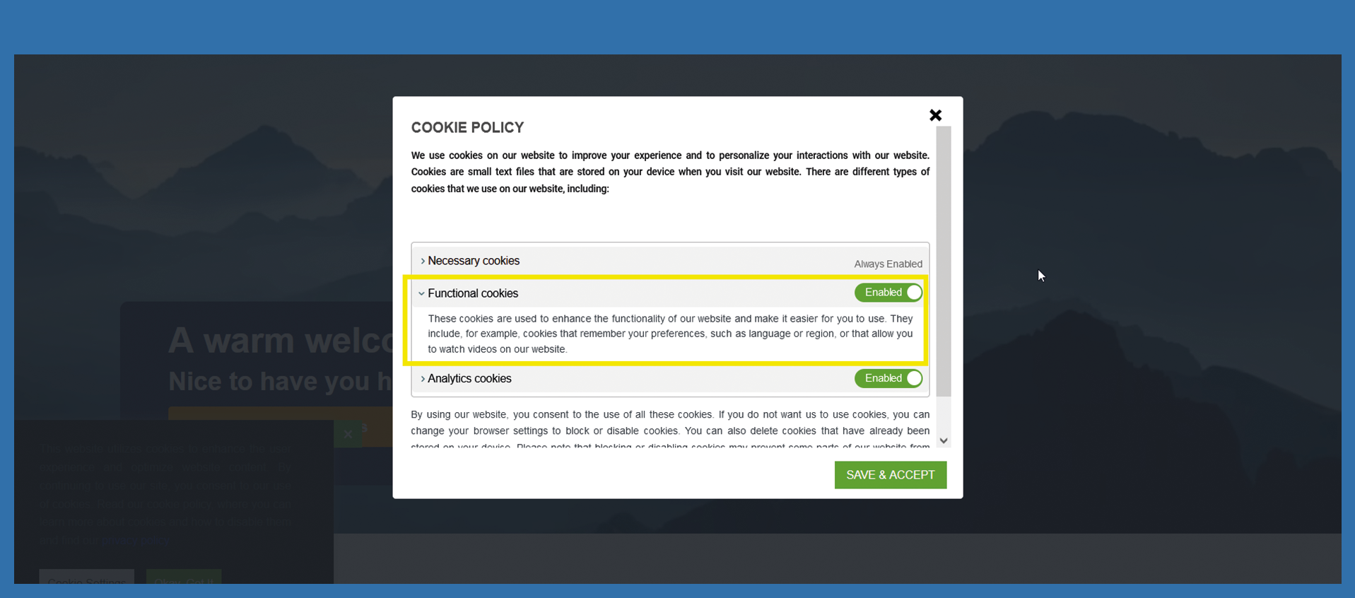 The Functional Cookies Title represents the heading of this cookie type and can be customized by changing the corresponding field.