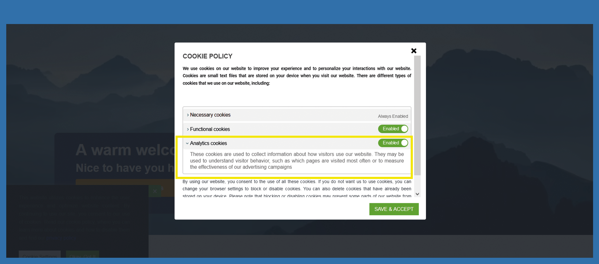 A short description of the function of these cookies can be displayed under Analytics Cookies Description.