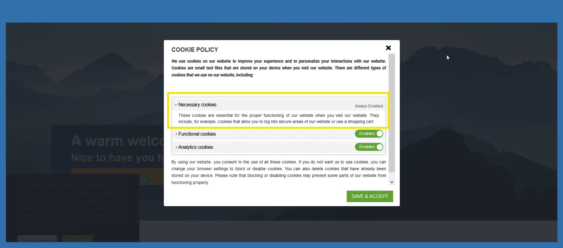 Use Necessary Cookies Title to rename the specific headline. Click into the textbox to change the heading.