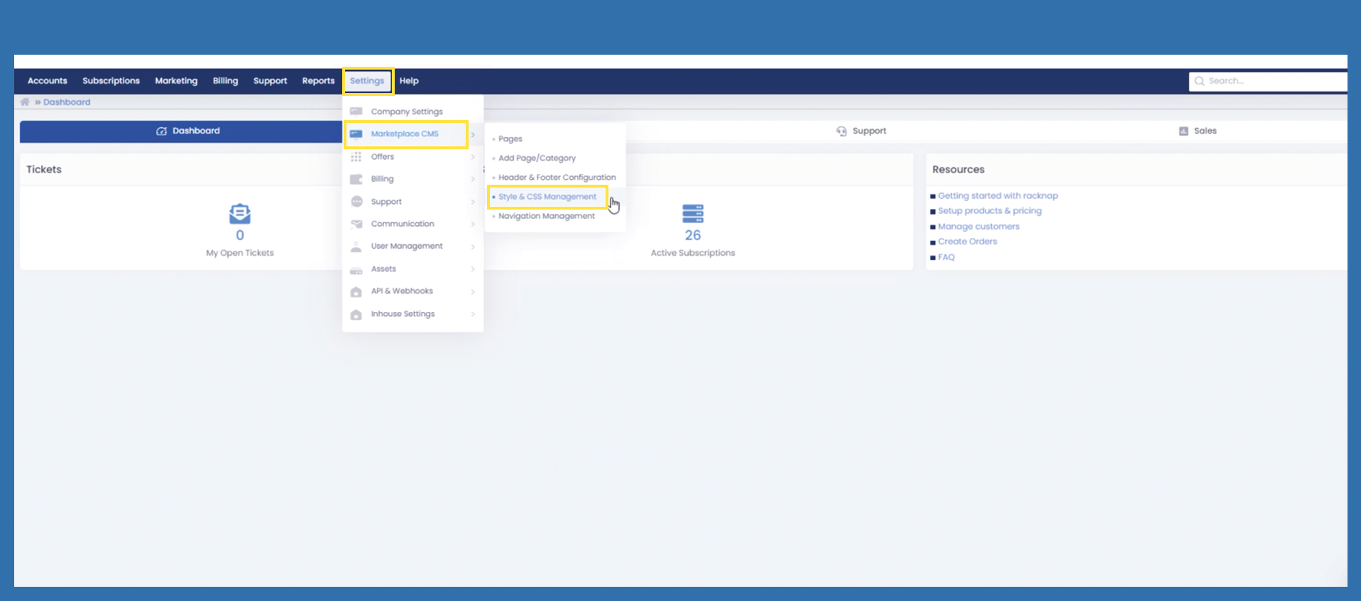 Settings > Marketplace CMS > Style & CSS Management