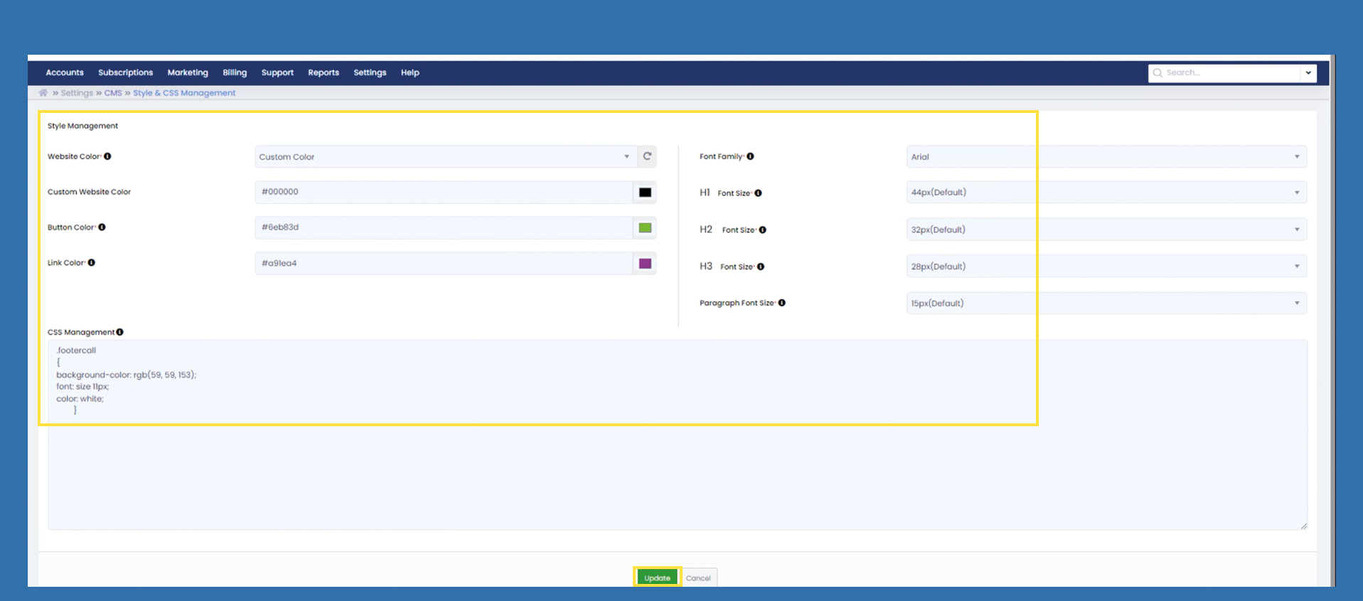 Marketplace CMS > Style & CSS Management