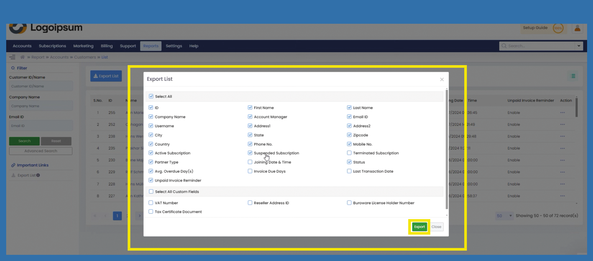 If you check the box under Select All, you can select all fields at once or uncheck the box to deselect all fields.