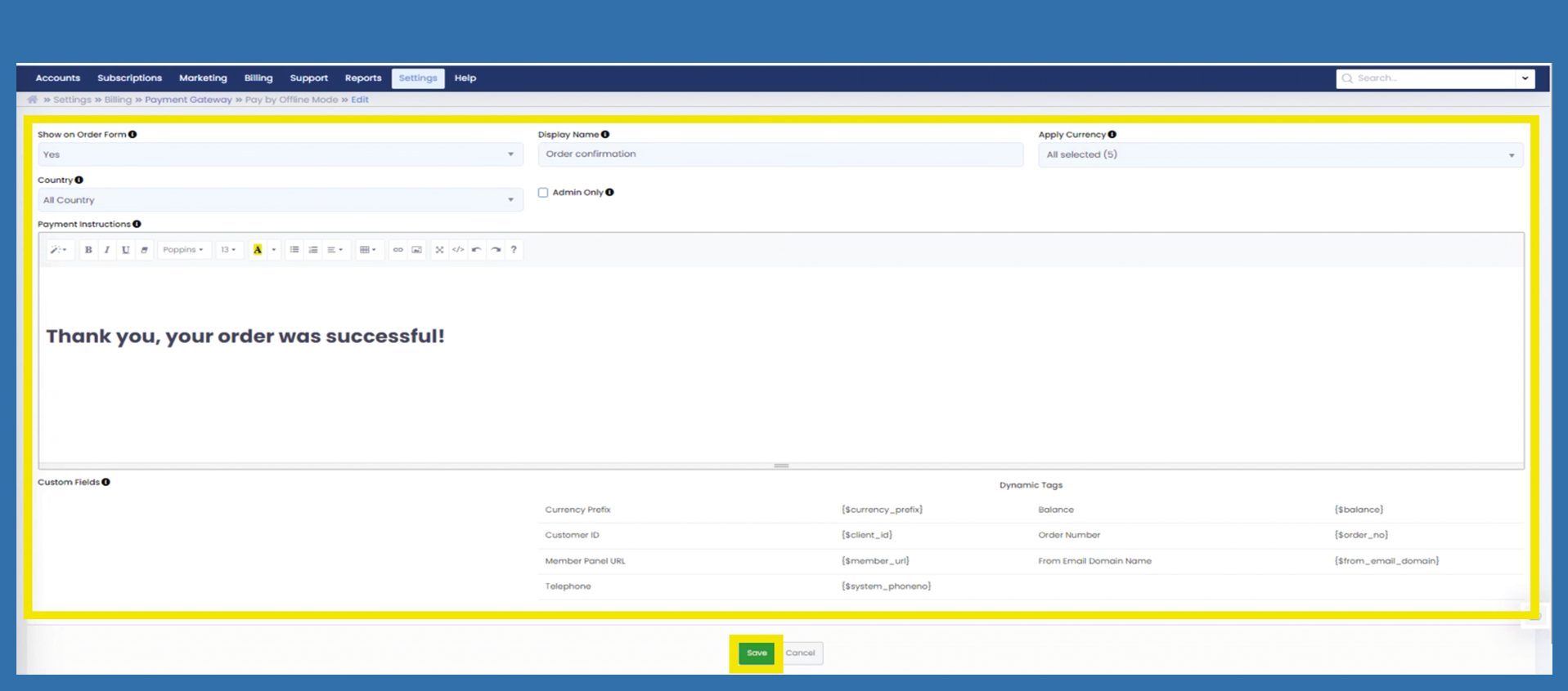 Billing > Payment Gateways