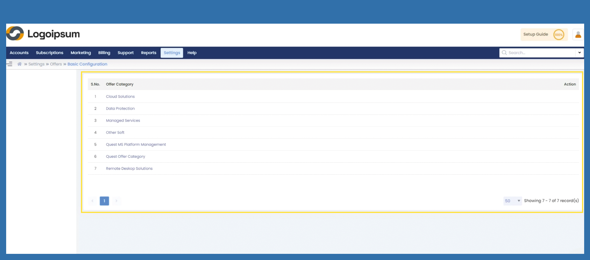 Using the Getting Started Wizard, you have already selected which offer group you would like to sell. Prianto`s admin has confirmed the corresponding categories and groups for you. Only these will be displayed here. Your purchase price has already been entered by Prianto`s Admin Panel.