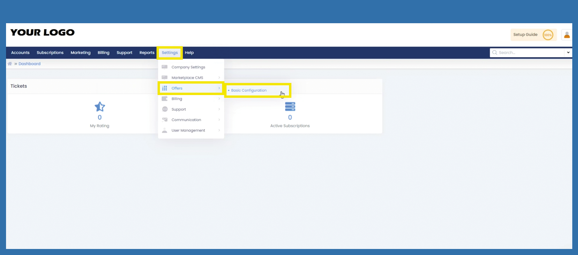 Settings > Offers > Basic Configuration
