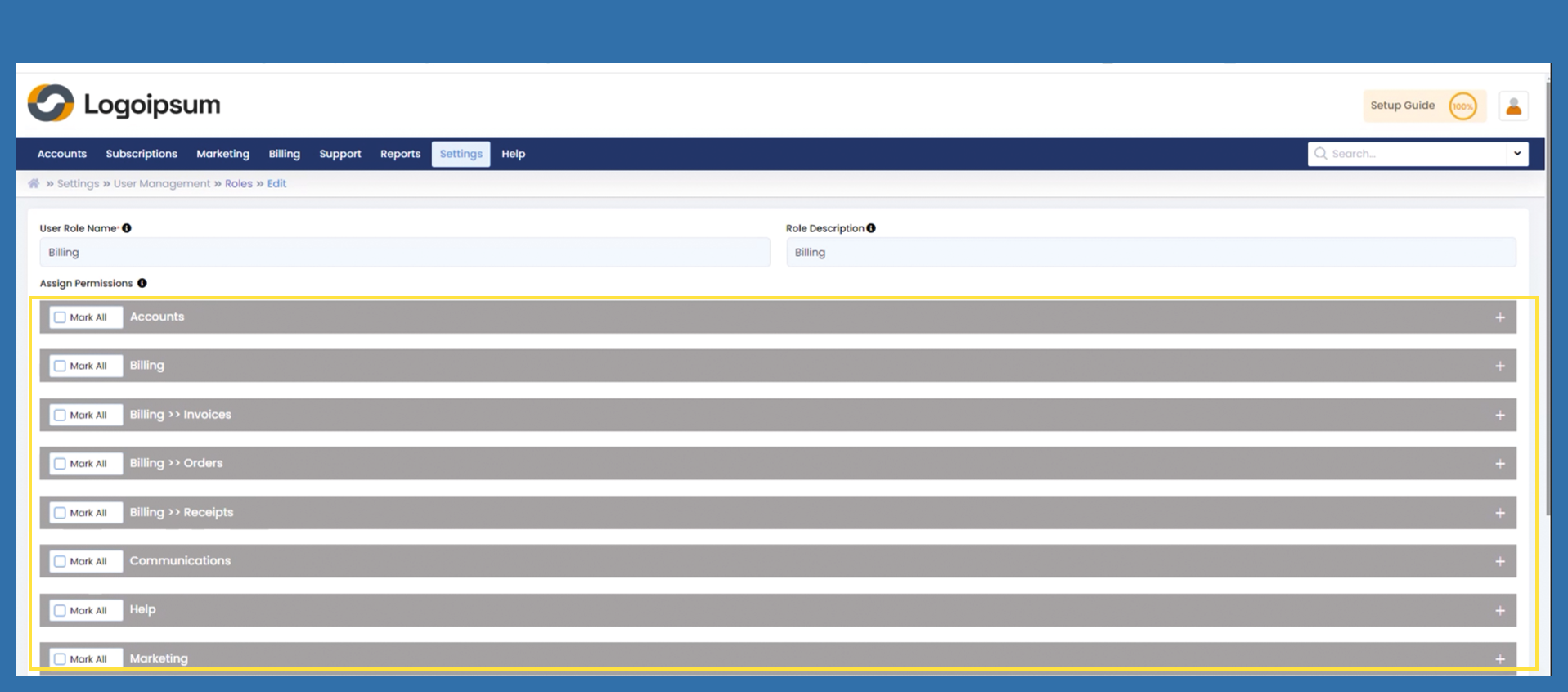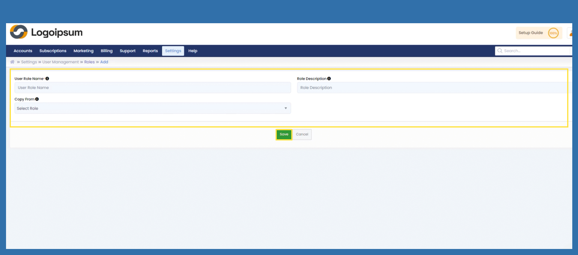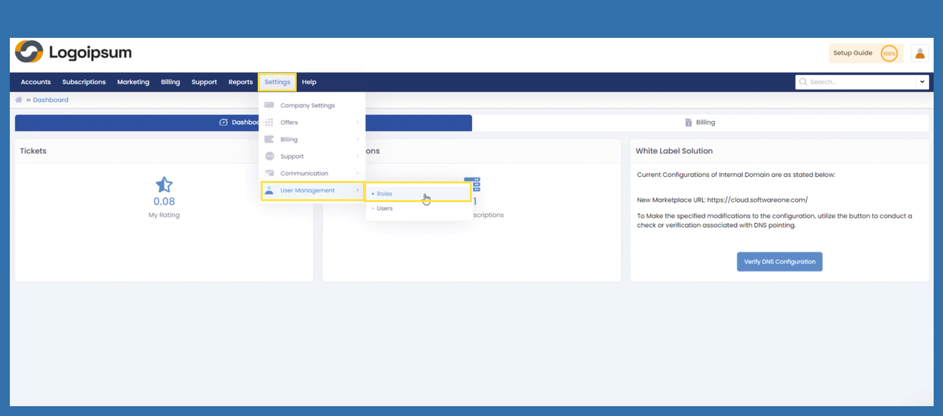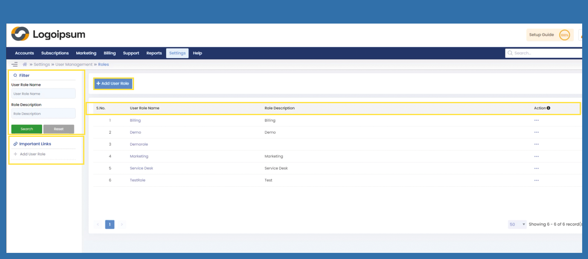 Settings >User Management > Roles