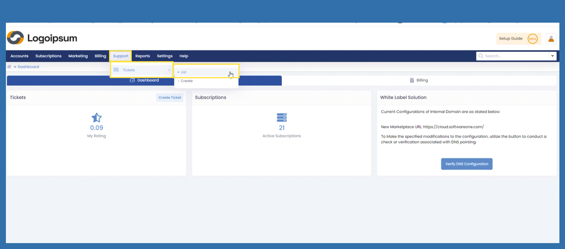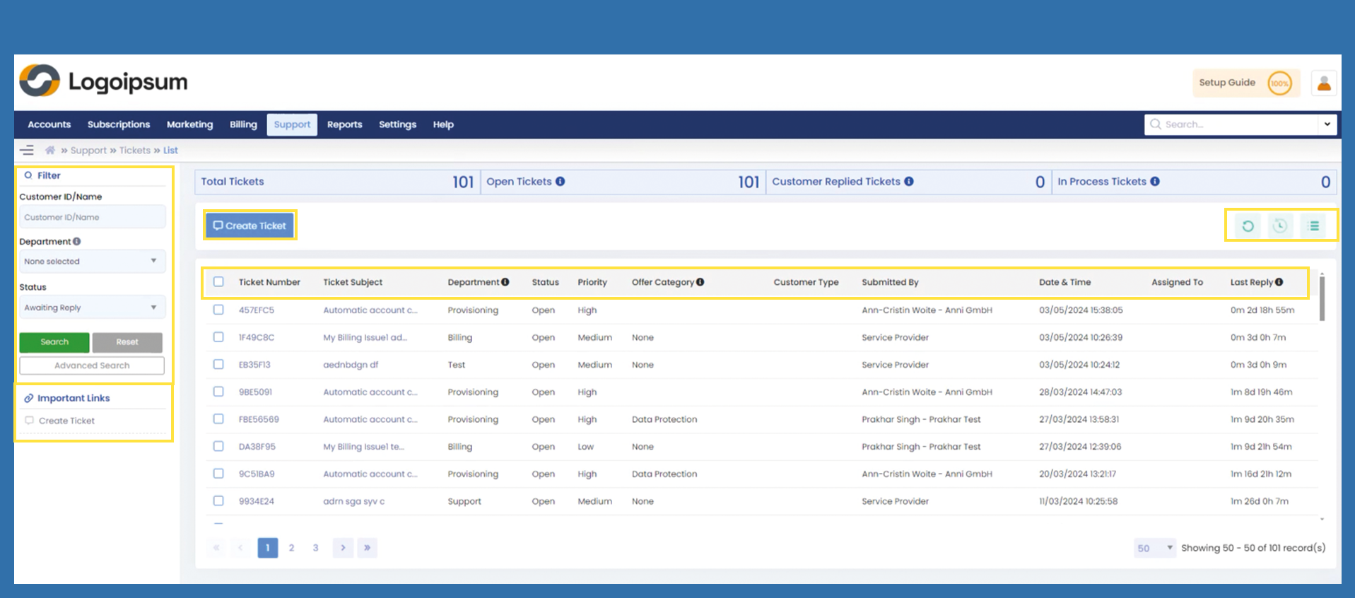 You can also use the Important Links or the blue button to create a ticket from this overview.