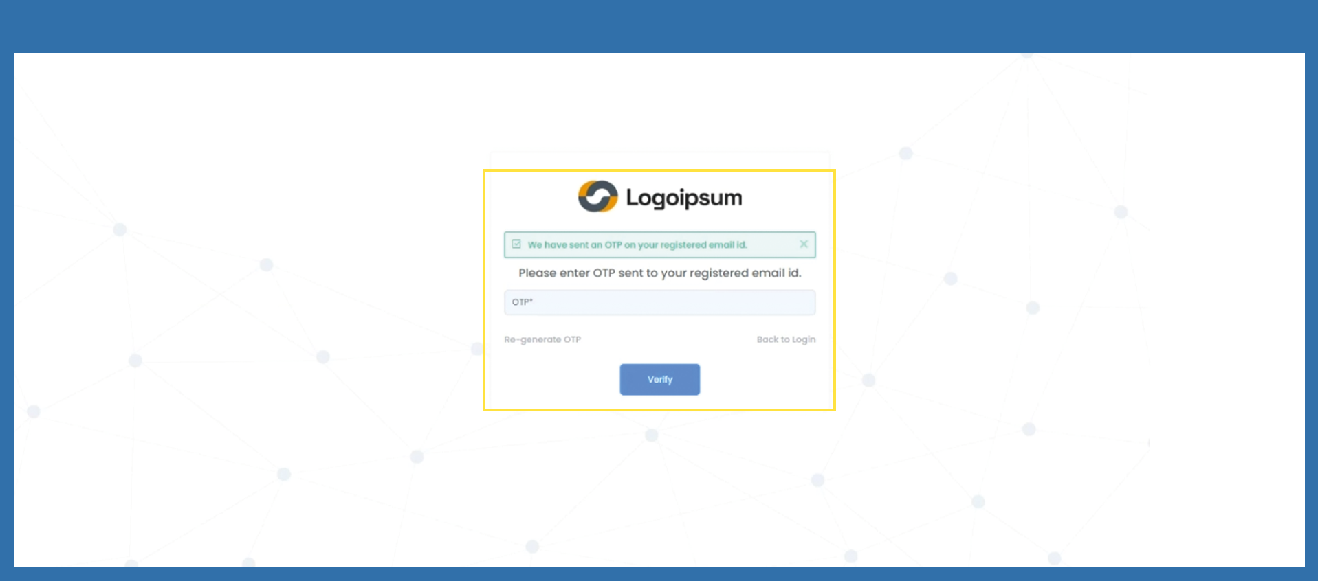 Please check for the generated OTP your Emails, copy the password and enter it in the corresponding field. Then click on Verify.