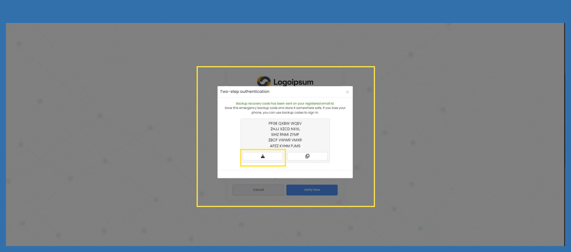 Here, you will receive instructions about what to do. Please download or copy the shown codes, by clicking on the corresponding symbols below the codes. Additionally, you will also receive an email with the codes. Then, you can close the pop up.
