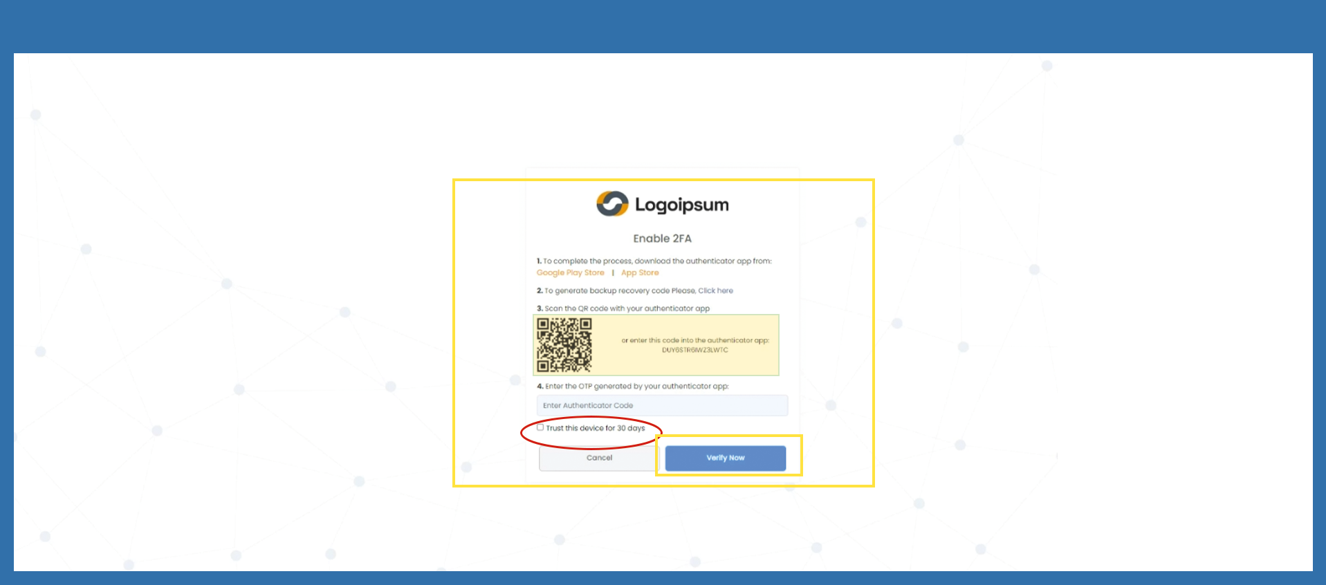 If you want to skip the authentication process for the next 30 days, please mark the checkbox for Trust this device for 30 days. Then, click on Verify Now.