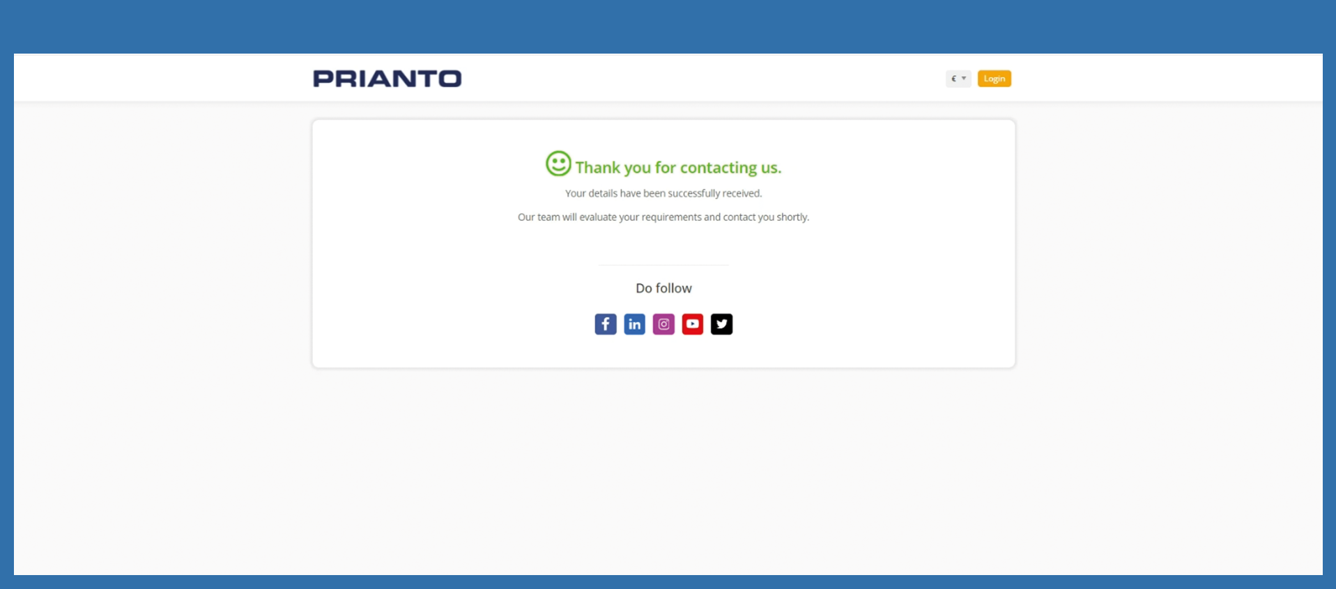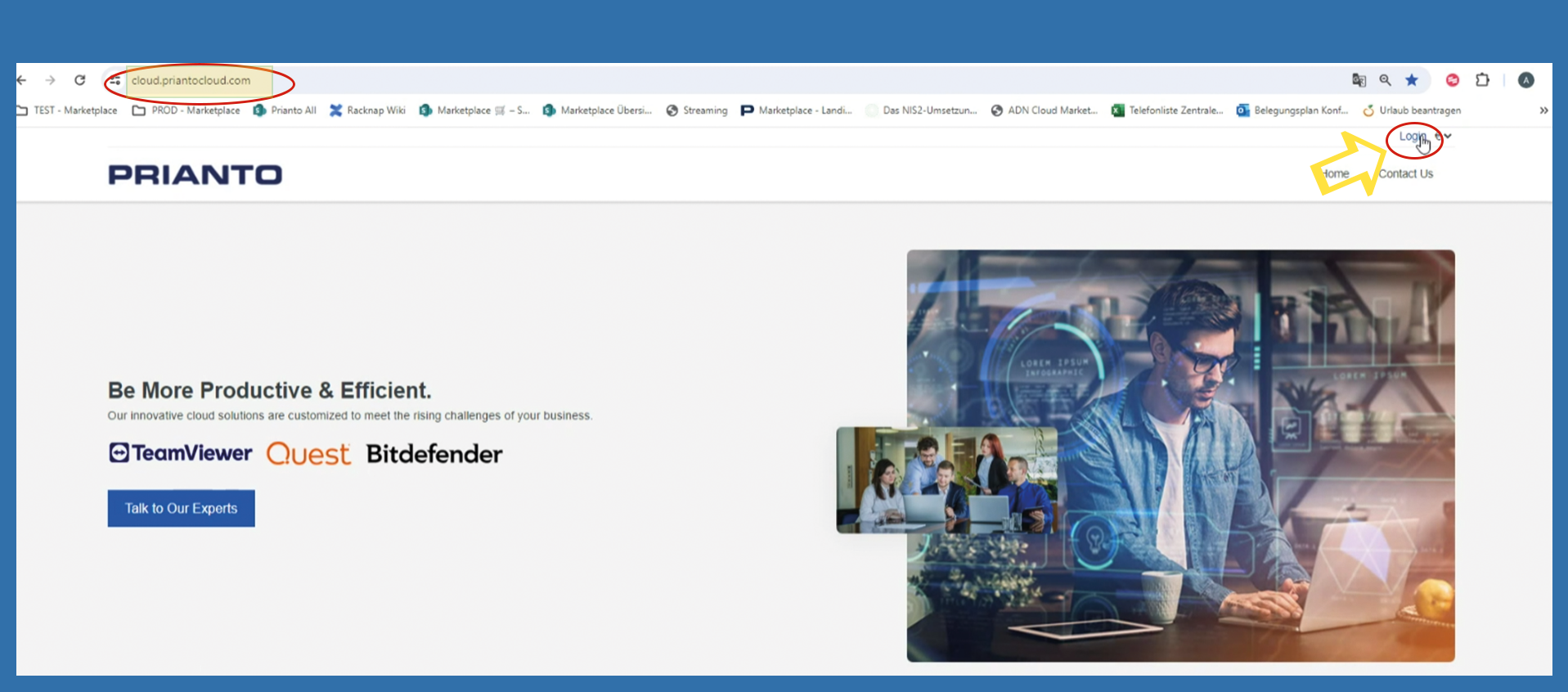 Please go to the following URL: https://cloud.priantocloud.com/ and click on Login.