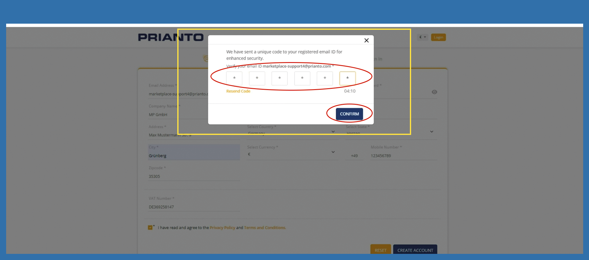You will receive an email with a 6-digit authentication code. Enter this code in the corresponding pop-up window on the website. Then click Confirm.